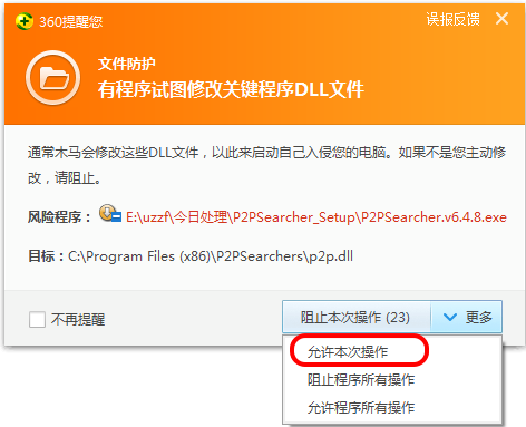 2、如遇杀软阻止,请允许,不然,打开软件后,软件提示非官方,直接不让用