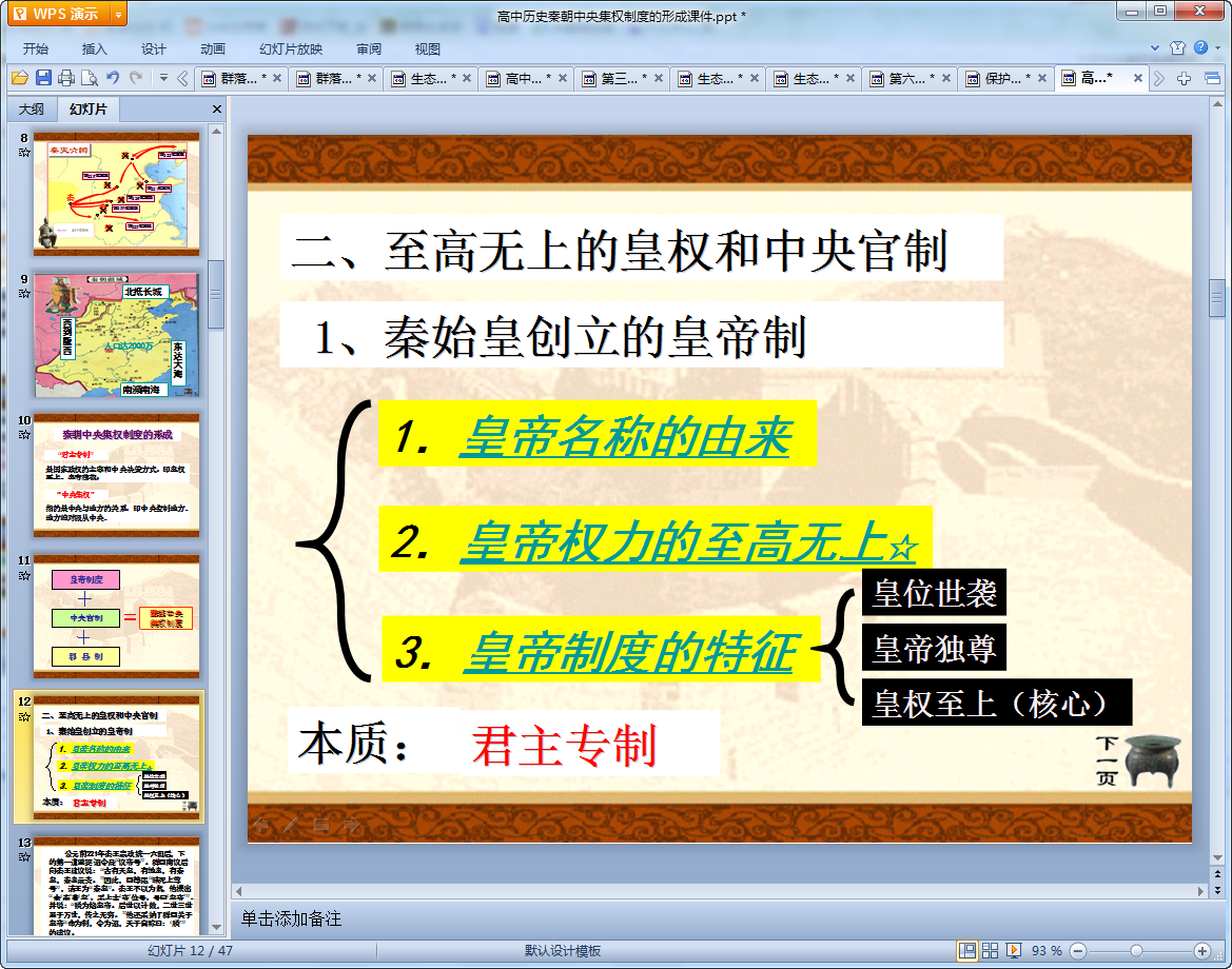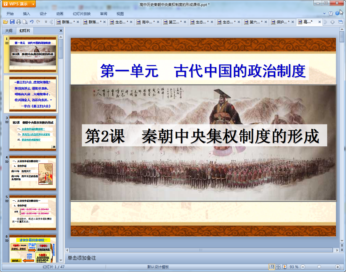 这是一篇历史教学课件秦朝中央集权制度的形成ppt,该课件制作精细,对课本中的知识点都做出了分析,非常不错的教学ppt,有需要的老师们或者需要了解这段历史的朋友们都可以来下载使用!