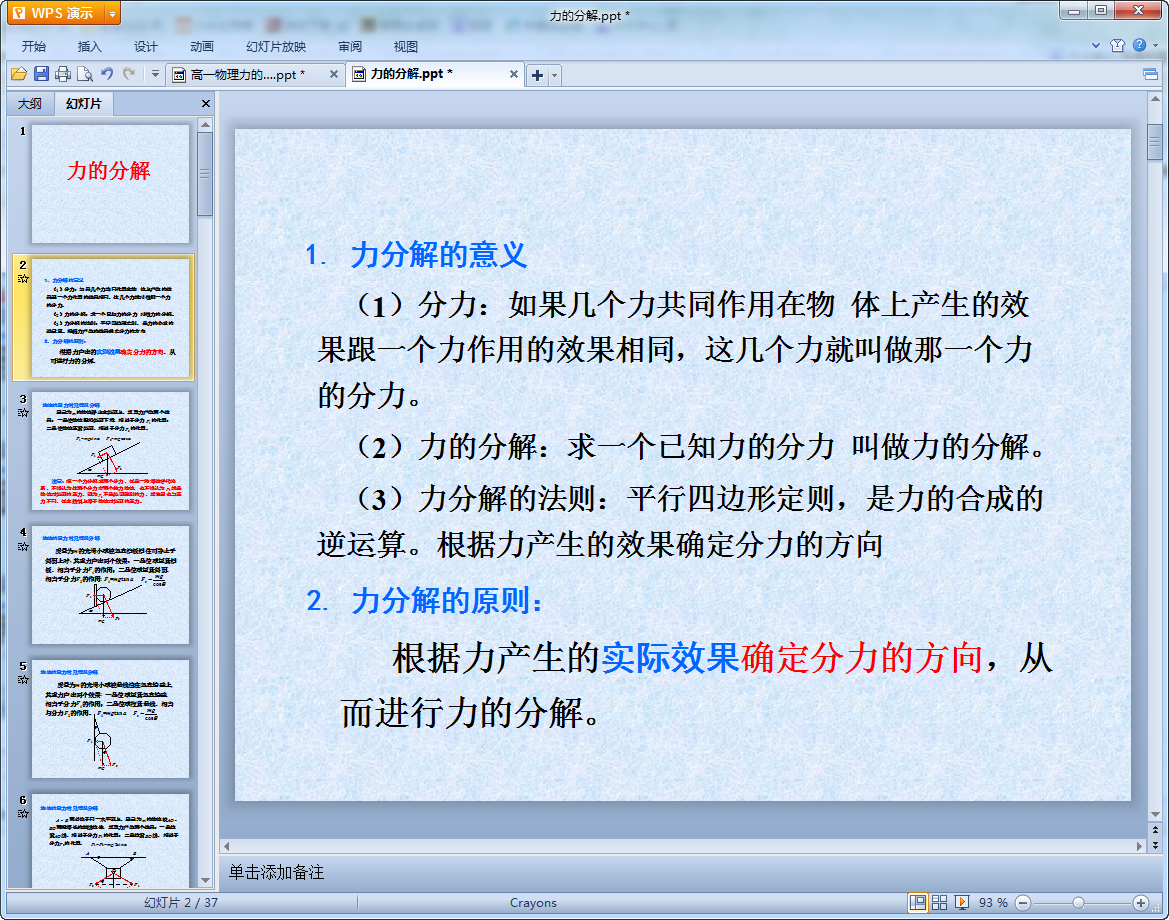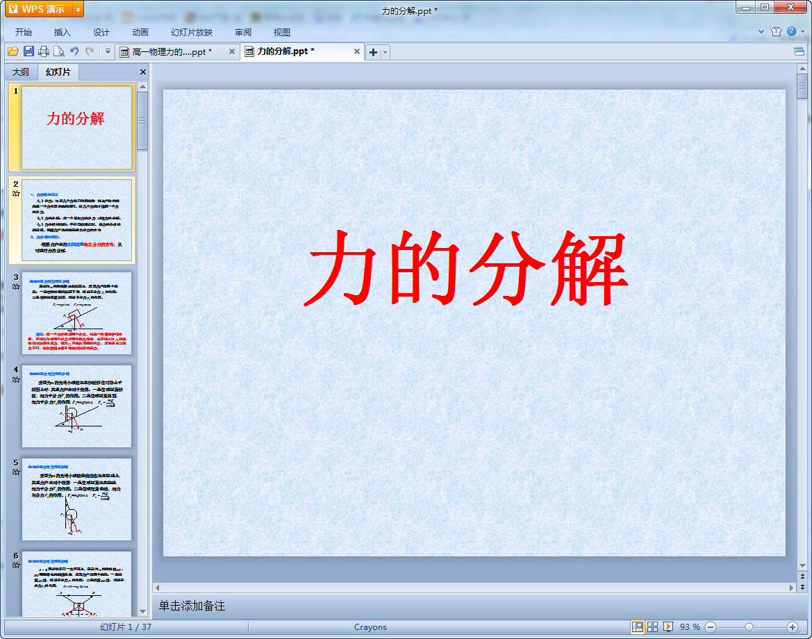 这是一篇高中物理力的分解ppt课件,课件制作简单采用淡蓝色的背景不花哨,对课本中的知识点分析准确加上大量的例题来巩固,非常不错的教学课件就是这个了,有需要的老师们可以来下载,不会让您失望!