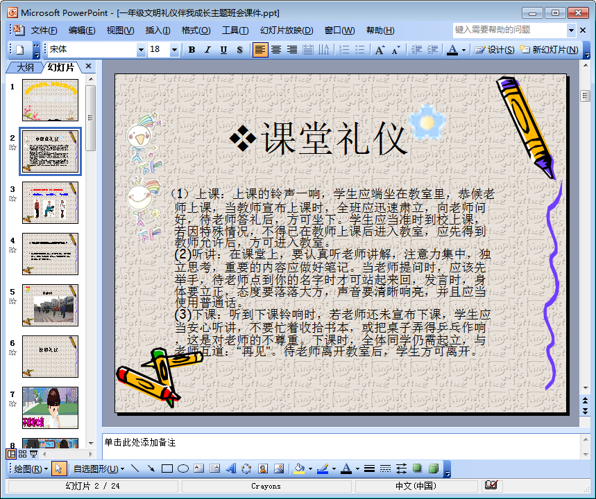 这是一份适合作为一年级班会课件进行选取使用的主题班会课件——一年级文明礼仪伴我成长主题班会课件ppt(以下简称为文明礼仪伴我成长ppt),该ppt共24页,内容完整免费,欢迎有需要的朋友们前来下载使用!