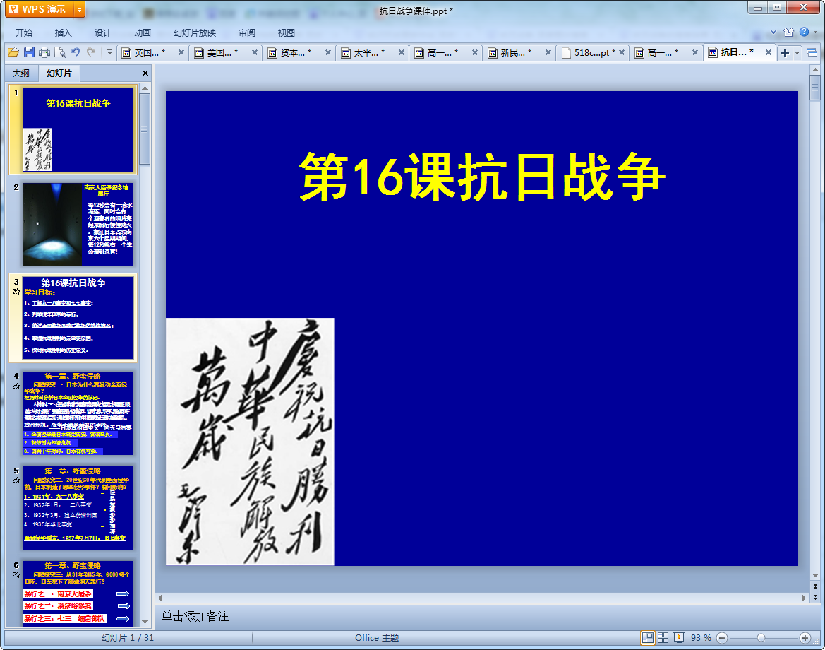 这是一篇高中历史抗日战争ppt课件,该课件共有32页制作精美内容丰富,课件中对抗战的进过进行了描述各大时间都做出了分析,非常不错的教学课件!有需要的朋友们可以来下载使用!