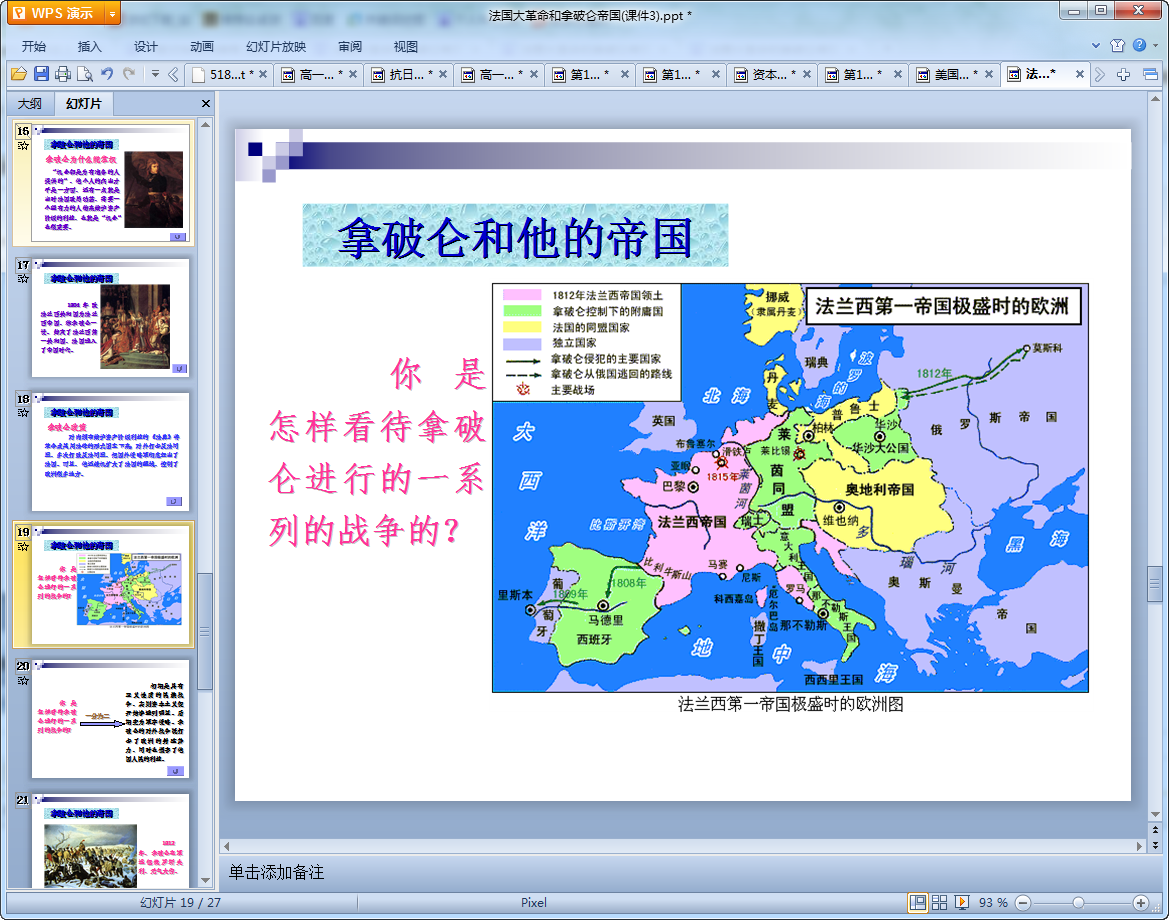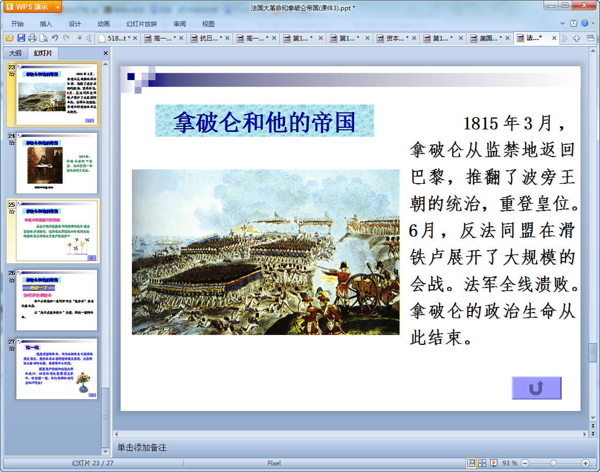 这是由东坡下载编辑整理的法国大革命和拿破仑帝国教学课件,该课件共有27页制作精细,课件内容十分丰富对课本中的各种知识点都做出了分析,有需要的老师们可以来看看,我们为你们提供免费的下载!
