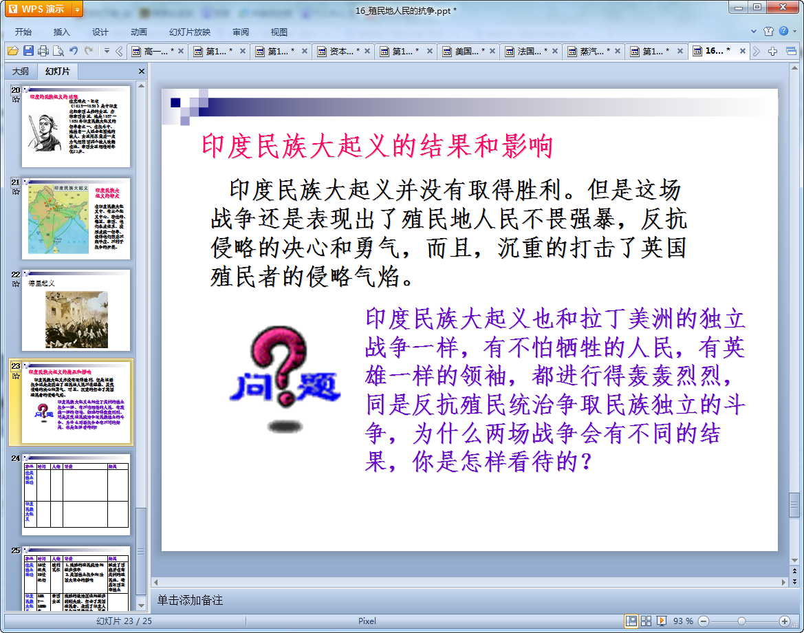 这是一篇人教版初中历史殖民地人民的抗争教学课件,该课件简洁的制作风格加上丰富的内容深受广大老师学生们的喜爱,有兴趣的朋友们可以来看看,不会让你们失望!
