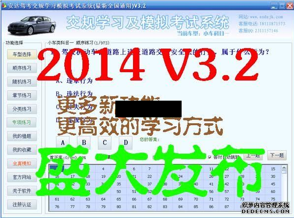 1、车型完整 软件题库支持所有车型、题库为2013年5月1日公布的官方最新题库,全国通用;