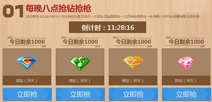 注意:这里不推荐比较热门的,蓝钻和黄钻抢的人肯定最多,为了提高成功率,推荐绿钻和粉钻。