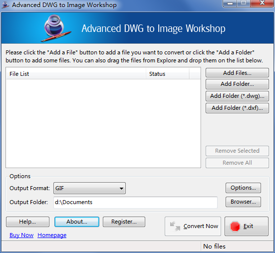 先进的DWG到图像工作室为您提供了加载多个文件转换与点击的能力。