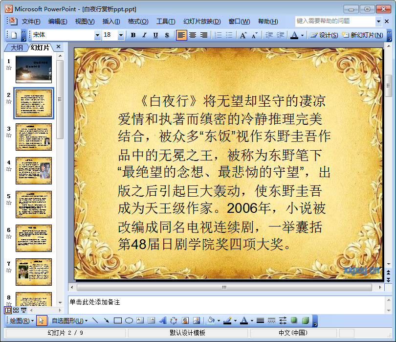 作为日本作家东野圭吾的代表作,白夜行一书受到了不少读者的喜爱和推崇,那么这本书到底讲述的是一个什么故事呢?它又为何会收到人们的亲睐呢?本节内容东坡小编为大家整理带来的是关于这本书的赏析ppt,其中包含有故事人物简介等,感兴趣的朋友可以下载下来了解一下哦!