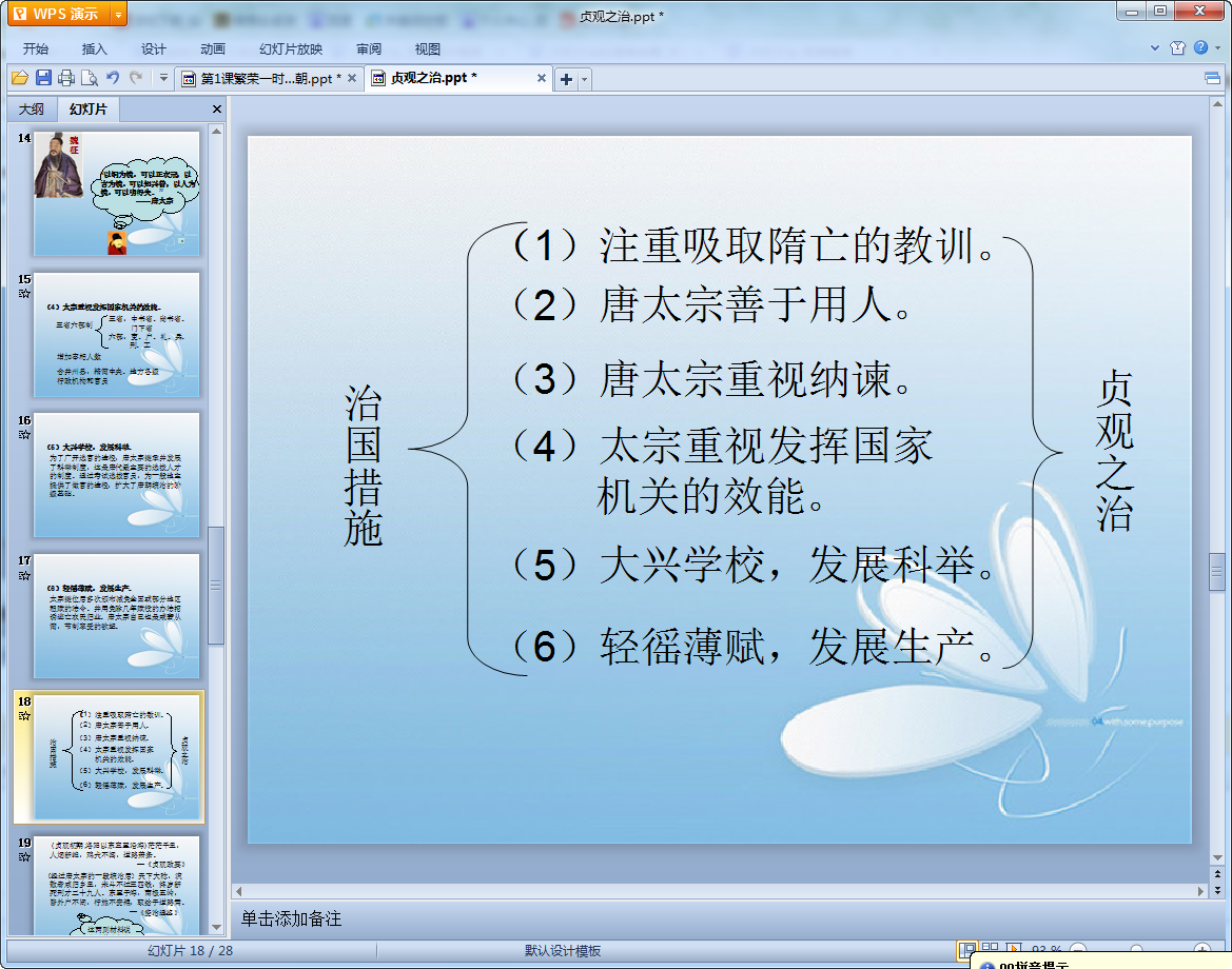 这是由东坡下载站编辑整理的贞观之治教学课件,该课件内容丰富知识点归纳完整,描述了我国唐朝最鼎盛时期的样貌,有兴趣的老师同学们可以来看看,我们为大家提供了免费的下载!