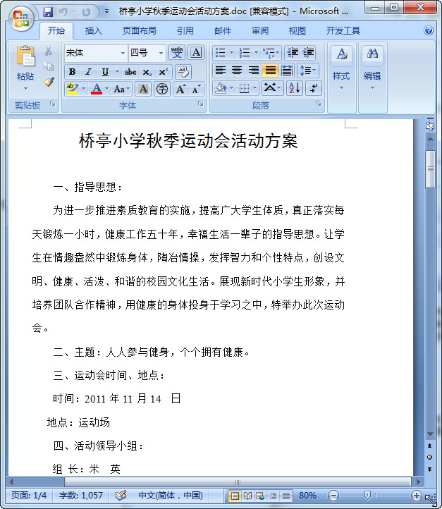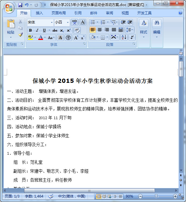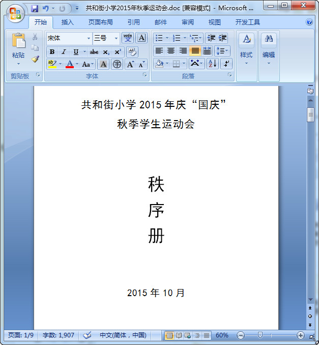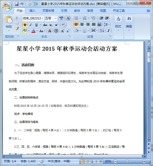 2015年小学生秋季运动会活动方案预览