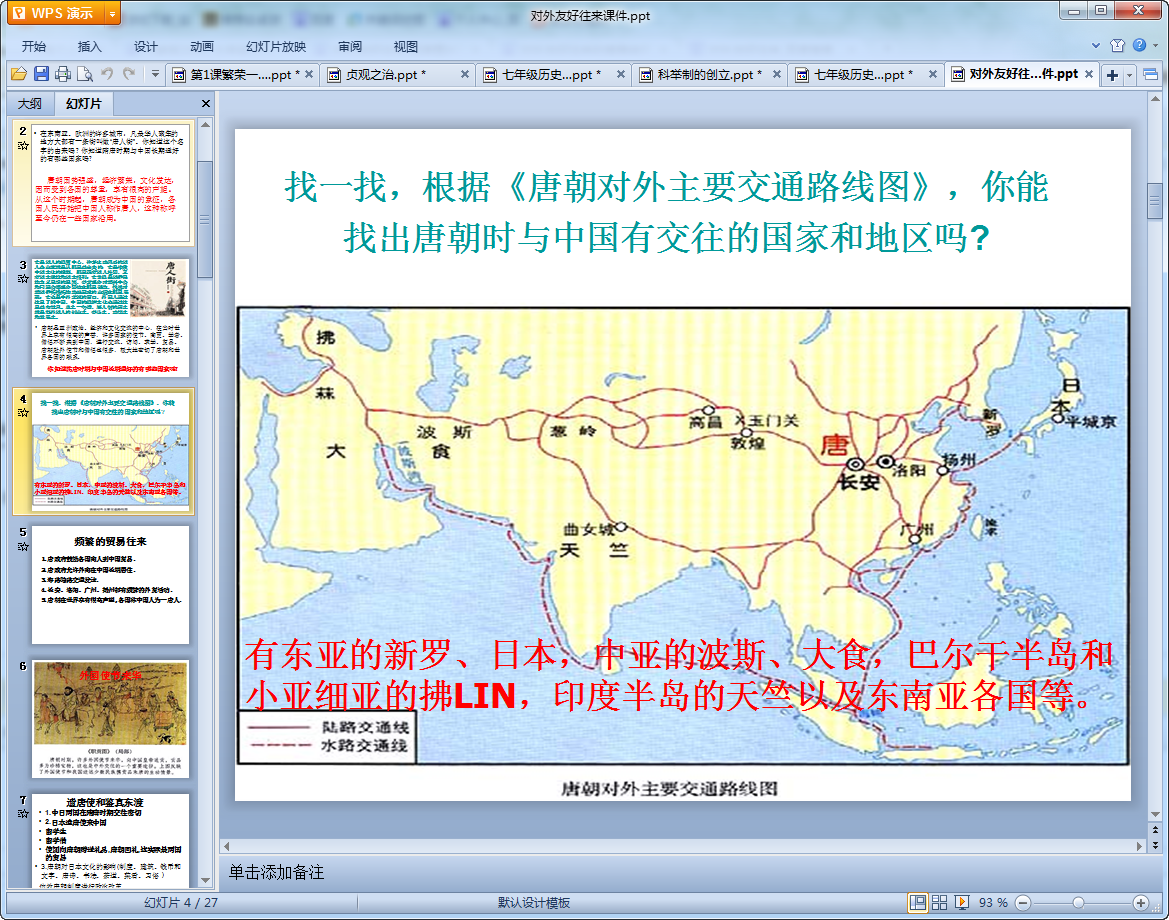 4.长安、洛阳、广州、扬州都有频繁的外贸活动.