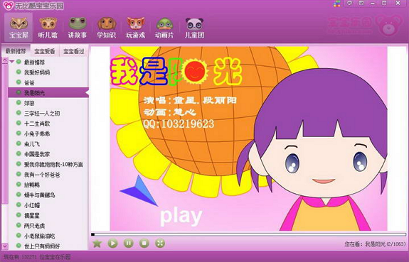 在小故事,成语故事,童话故事,中文儿歌,中文童谣,英文儿歌单元中,既有充满神奇浪漫色彩的神话传说、民间故事;也有开拓心智的童话、寓言、幽默故事以及朗朗上口的经典儿歌、歌曲。而且,都是经过精心剪裁提炼的、世界故事宝库中最脍灸人口的名篇佳作,其中所表达的对真、善、美必胜的乐观信念,对假、恶、丑的嘲讽和无情鞭挞,对于开拓智力,陶冶性情,锻炼意志,完善精神,都会有很大的帮助。这些故事和儿歌是滋润小朋友心田的雨露和甘泉。经典的故事、儿歌,曾经陪伴过不知多少代人走过自己的童年和少年岁月,直到他或她成为白发苍苍的老人时,童年的记忆仍然回味无穷,可见它们是具有这样的魅力了。
