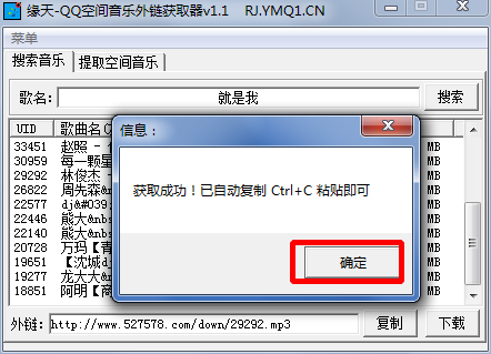 选择歌曲即可获取成功,Ctrl+v粘贴即可