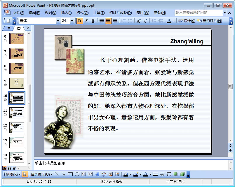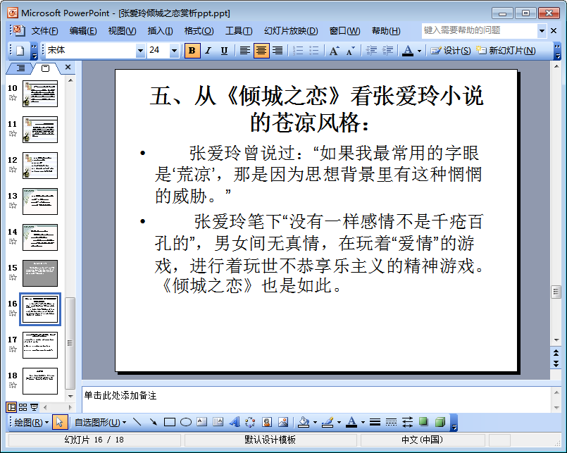 小说倾城之恋是张爱玲的代表作之一,本节内容东坡小编为大家带来的的是关于这部小说的赏析ppt,该ppt除了对小说故事情节以及人物做了详细介绍外,还对作家本人进行非常全面的分析,是一份十分具有参考价值的ppt,该ppt共18页,内容完全免费,欢迎有需要的朋友们前来下载查阅!