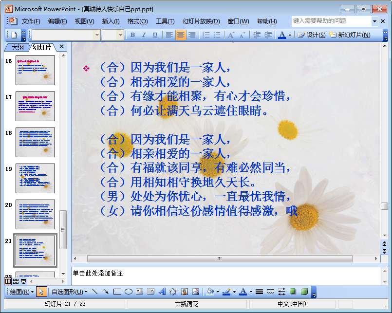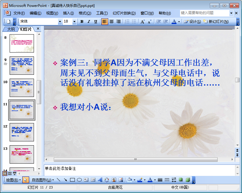 “真诚待人,快乐自己”——这是一份与真诚有关的ppt,ppt内容包括与真诚有关的小故事欣赏,并且详细探讨了“为什么我们要真诚待人?”等问题。适合作为班会课件进行选取使用,欢迎有需要的朋友们前来下载!