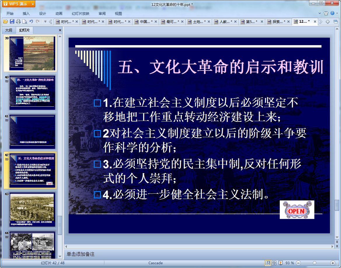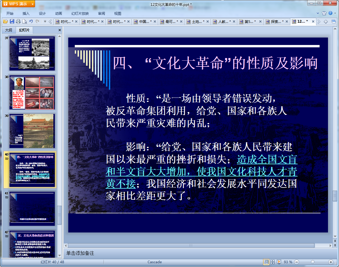 这是一篇初中历史文化大革命的十年教学课件ppt,该课件中简单描述了我国那动荡的十年以及文化大革命的启示与教训,对文章中的知识点归纳的十分完整,比较不错的教学课件,感兴趣的老师们可以来看看,我们东坡为大家提供了免费的下载!