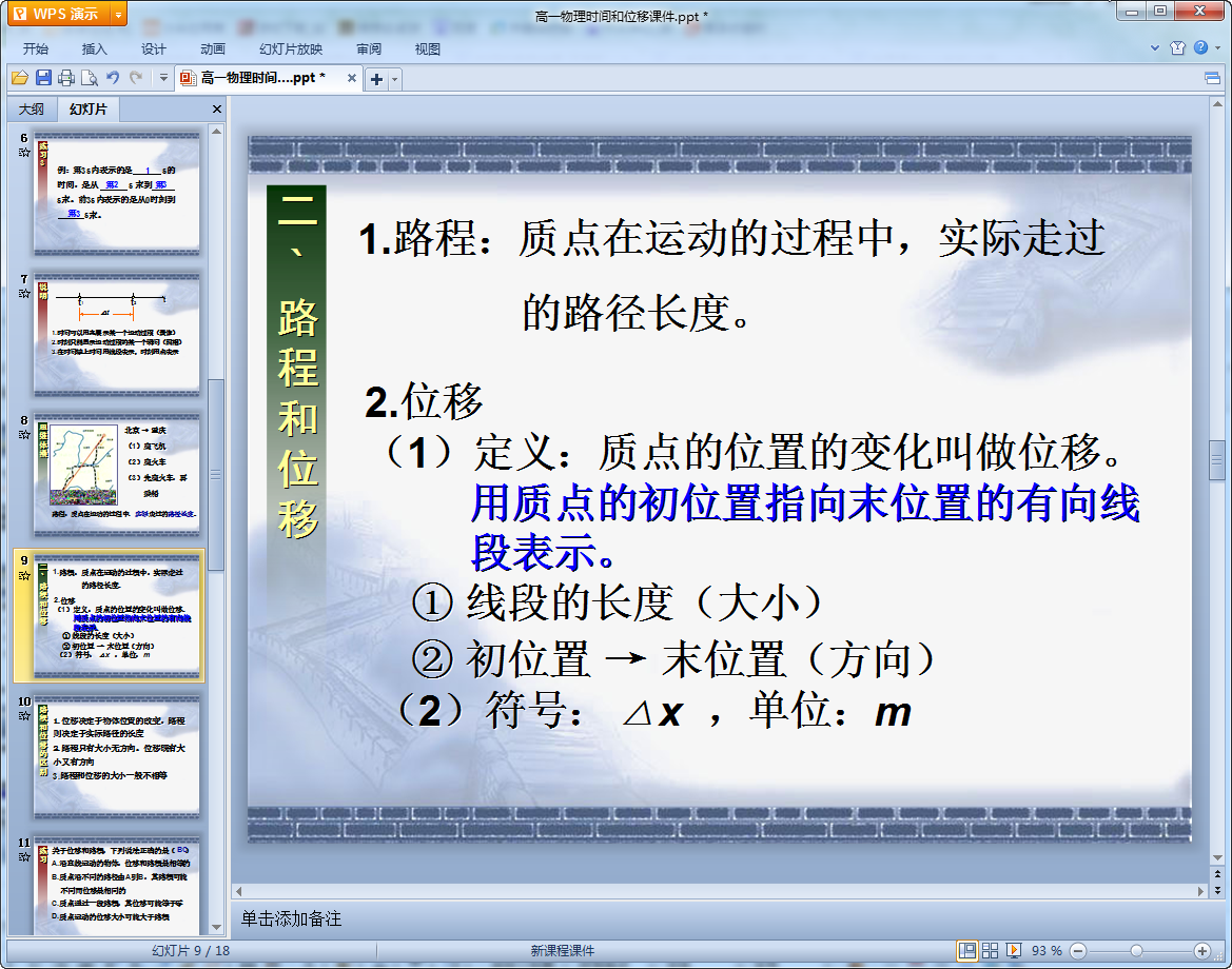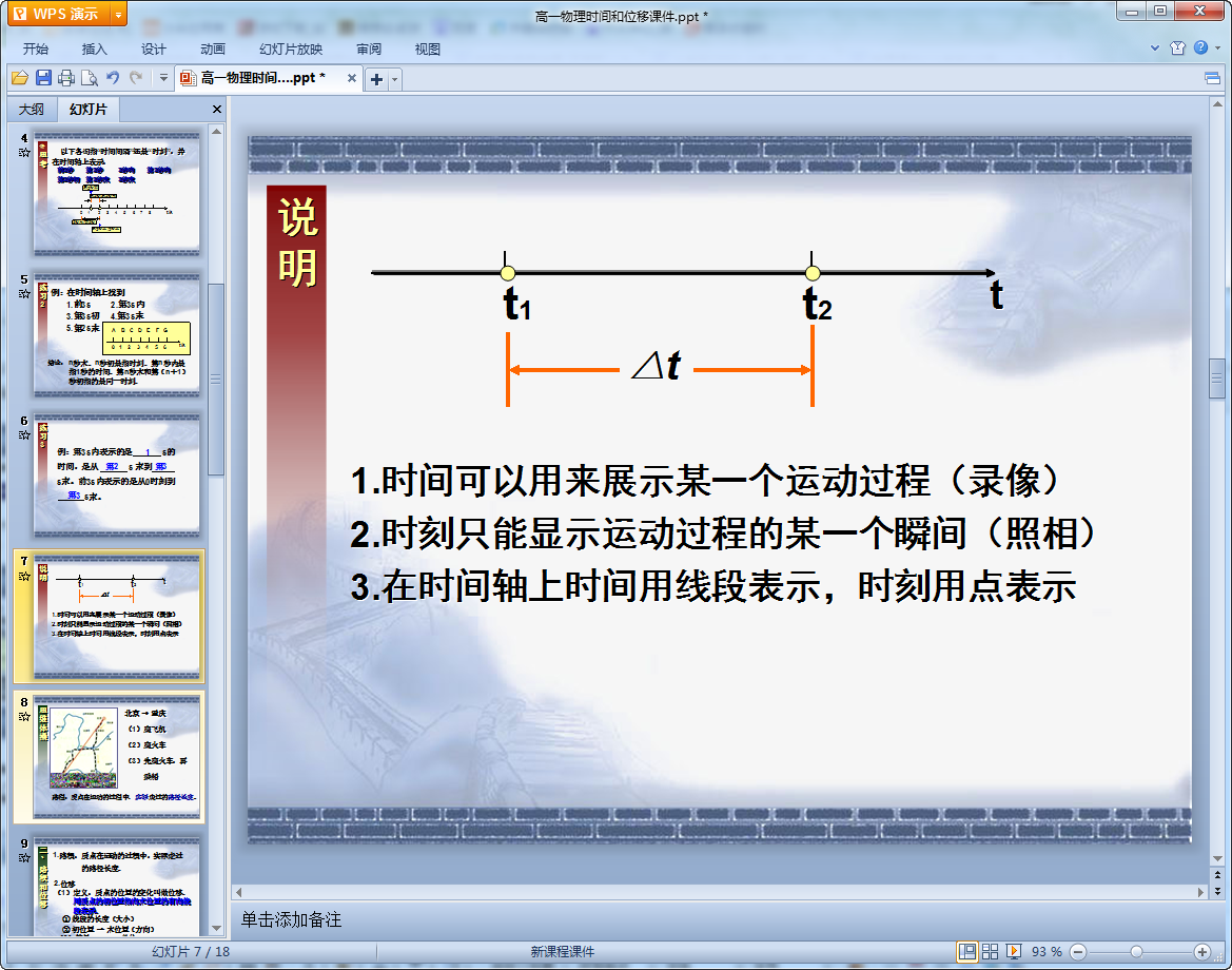 这是一篇高一物理时间和位移教学课件ppt,该课件共有18页制作十分精美,精细的归纳出了课本上的各个知识点,非常不错的教学课件有需要的老师们可以来这边下载使用,不会让你失望!