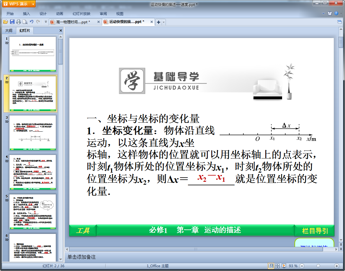 1.坐标变化量:物体沿直线运动,以这条直线为x坐