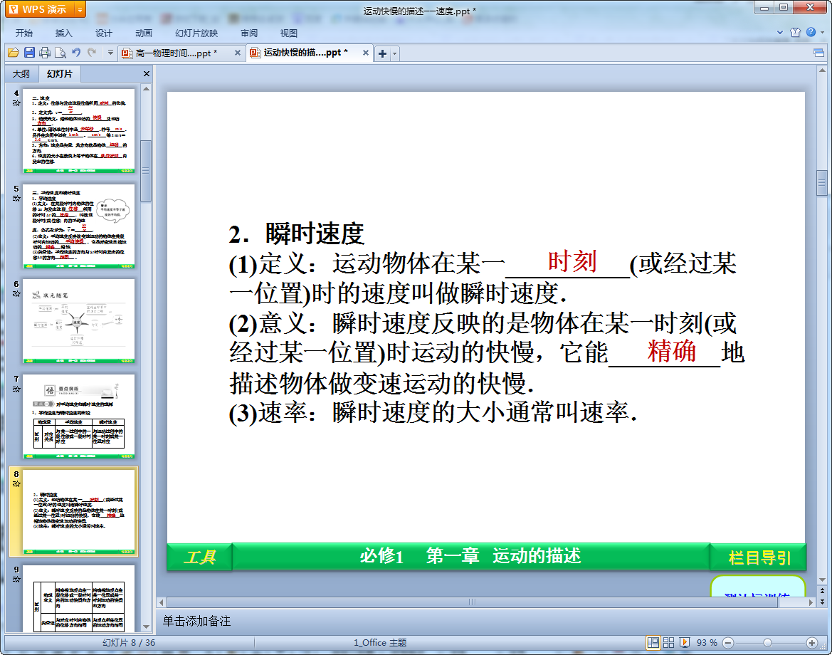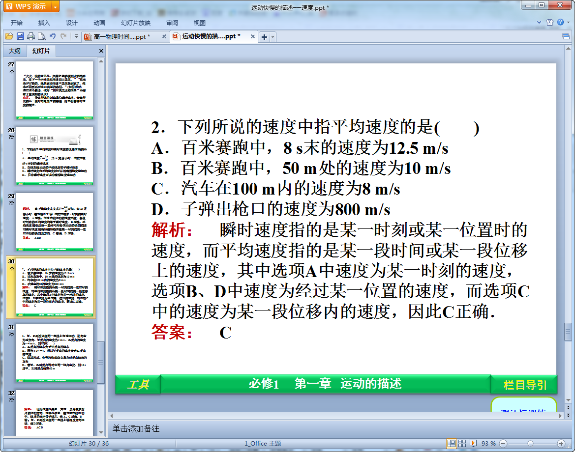 这是一篇高中物理运动快慢的描述速度教学课件,该课件共有36页内容十分丰富,对课文中的知识点归纳清楚完善加上大量的习题深受广大老师们的欢迎,有需要的朋友们可以来下载使用!