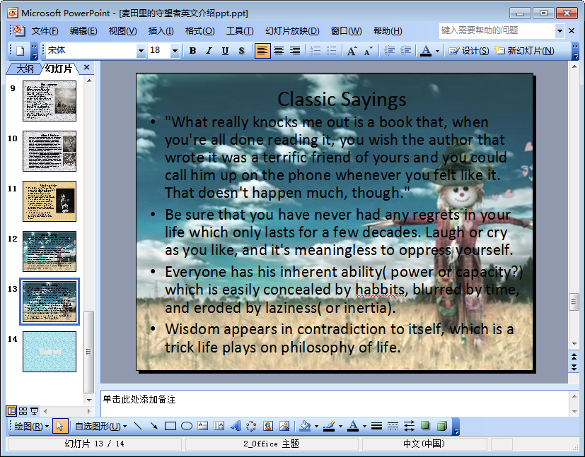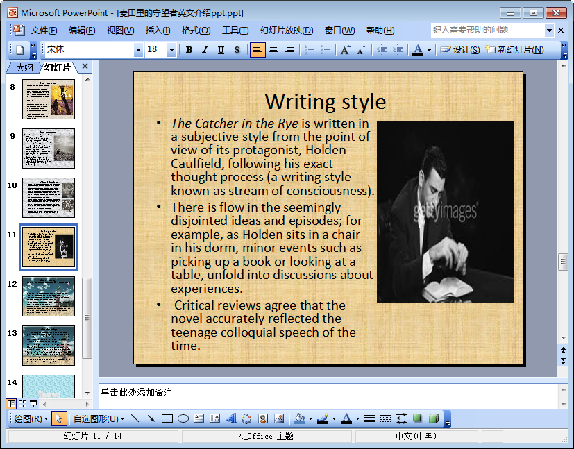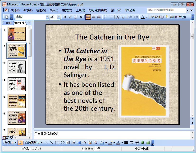 麦田里的守望者英文介绍ppt预览图