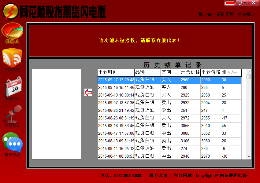 2、同花顺股指期货闪电版机器人集智能分析、自动、手动交易功能于一身。