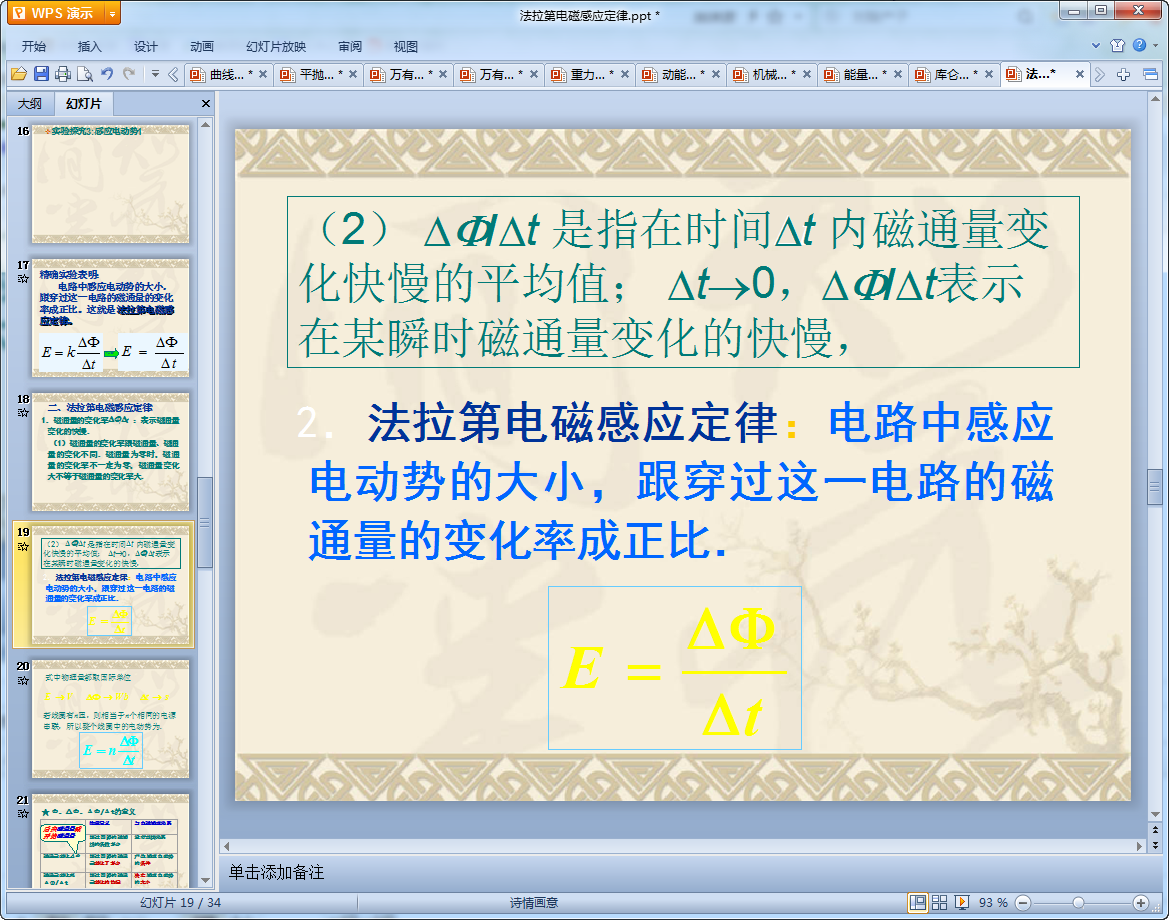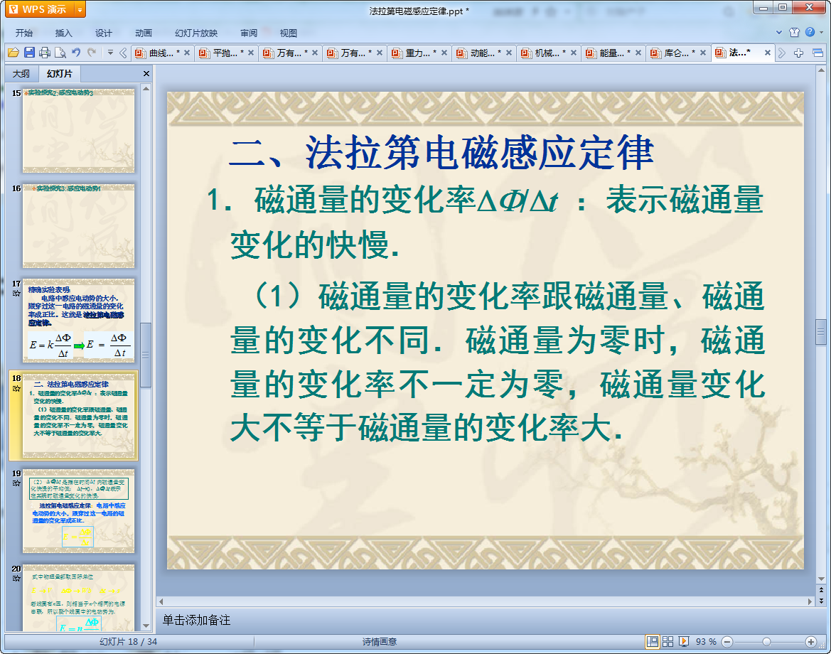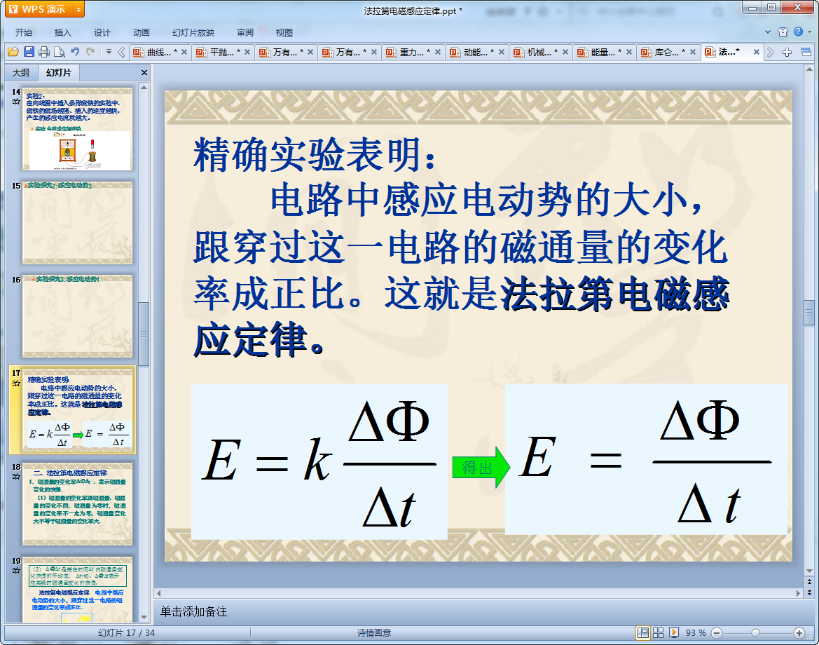 这是一篇法拉第电磁感应定律ppt课件,该课件共有34页内容丰富制作精细加上大量的图片能让学生们更容易的理解知识,比较不错的教学课件,有需要的朋友们可以来下载使用!
