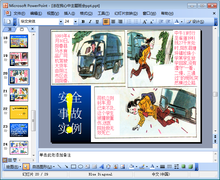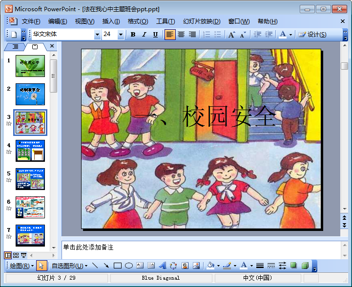 该三一班学生法制安全教育主题班会之法在我心中ppt共由29页组成,内容图文并茂,十分具有引导性和教育性,ppt对校园安全、交通安全、意外事故的防范及处理等做了详细的介绍和说明,是一份非常完整的ppt课件,欢迎有需要的朋友们前来下载!