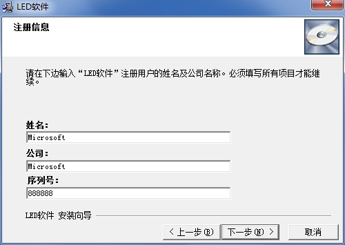 输入灵星雨Led演播室序列号888888,点击下一步安装即可