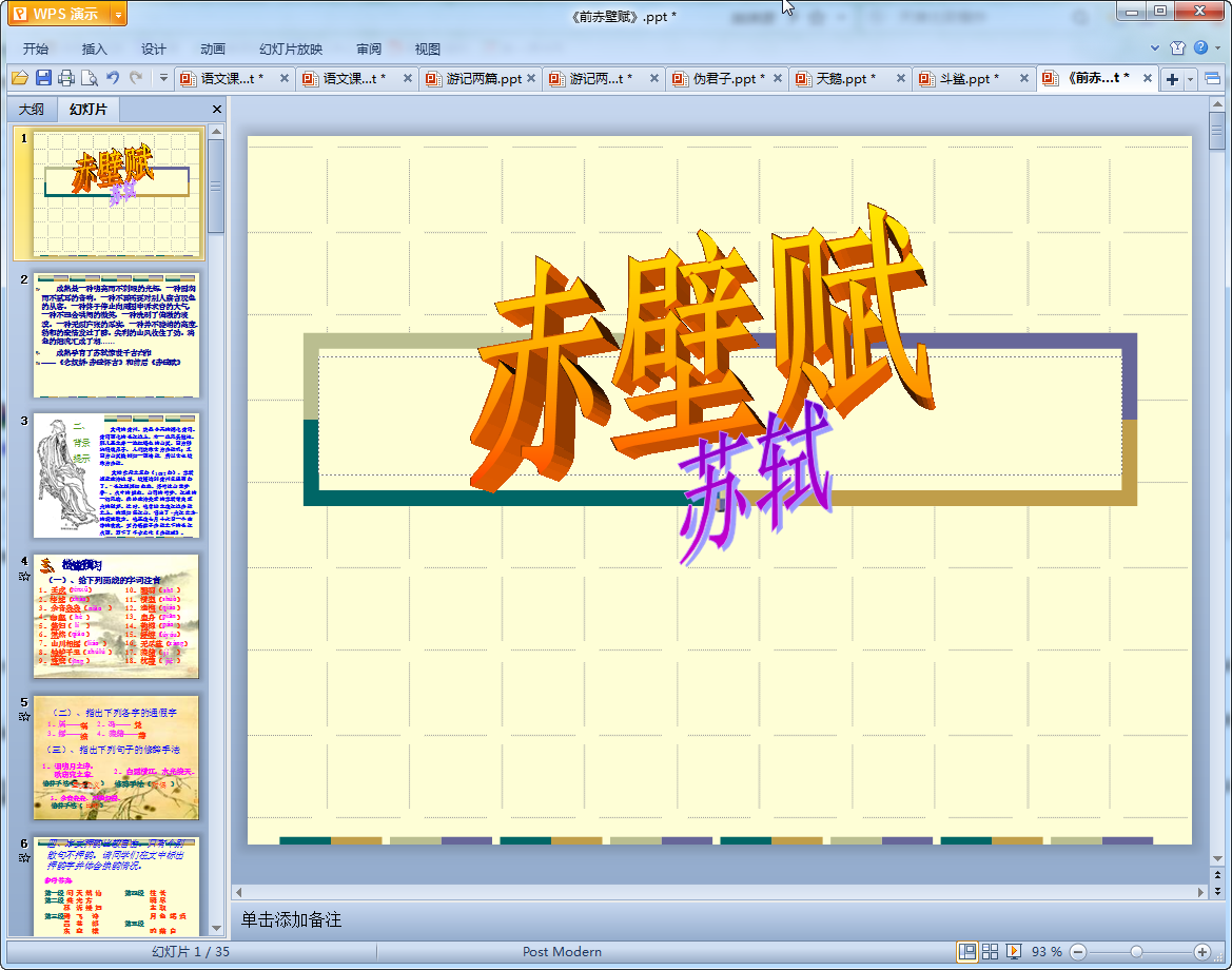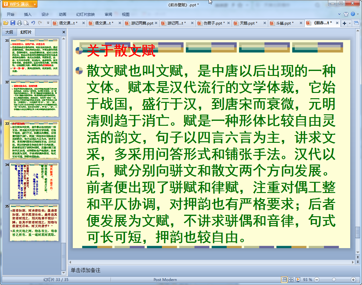 这是一篇前赤壁赋教学课件ppt,该课件共有35页内容比较丰富,对课文的讲解也十分详细深受广大老师同学们的喜欢,有需要的老师们可以来看看我们东坡为大家提供免费的下载!