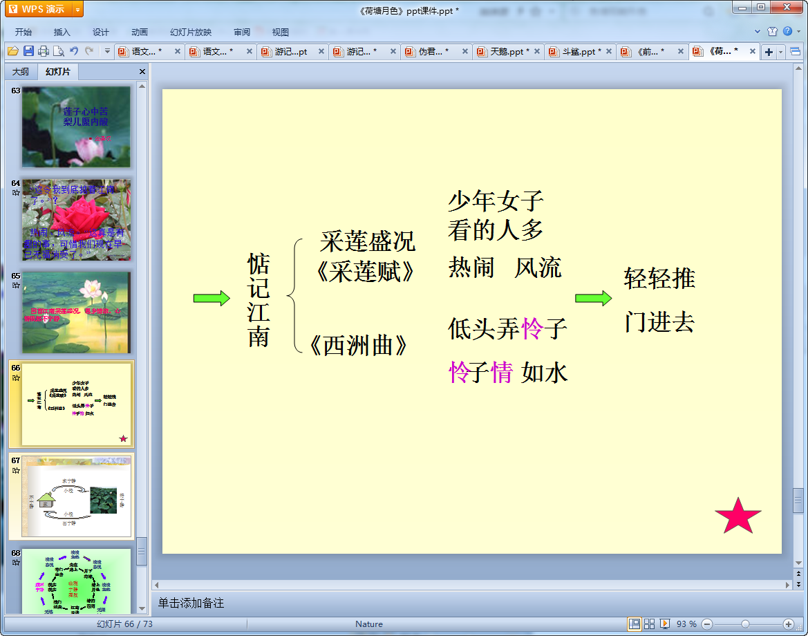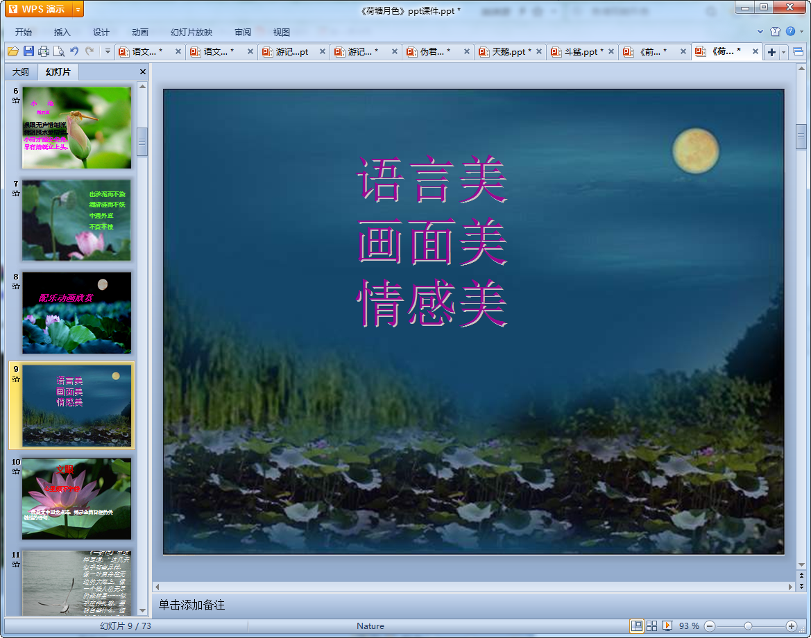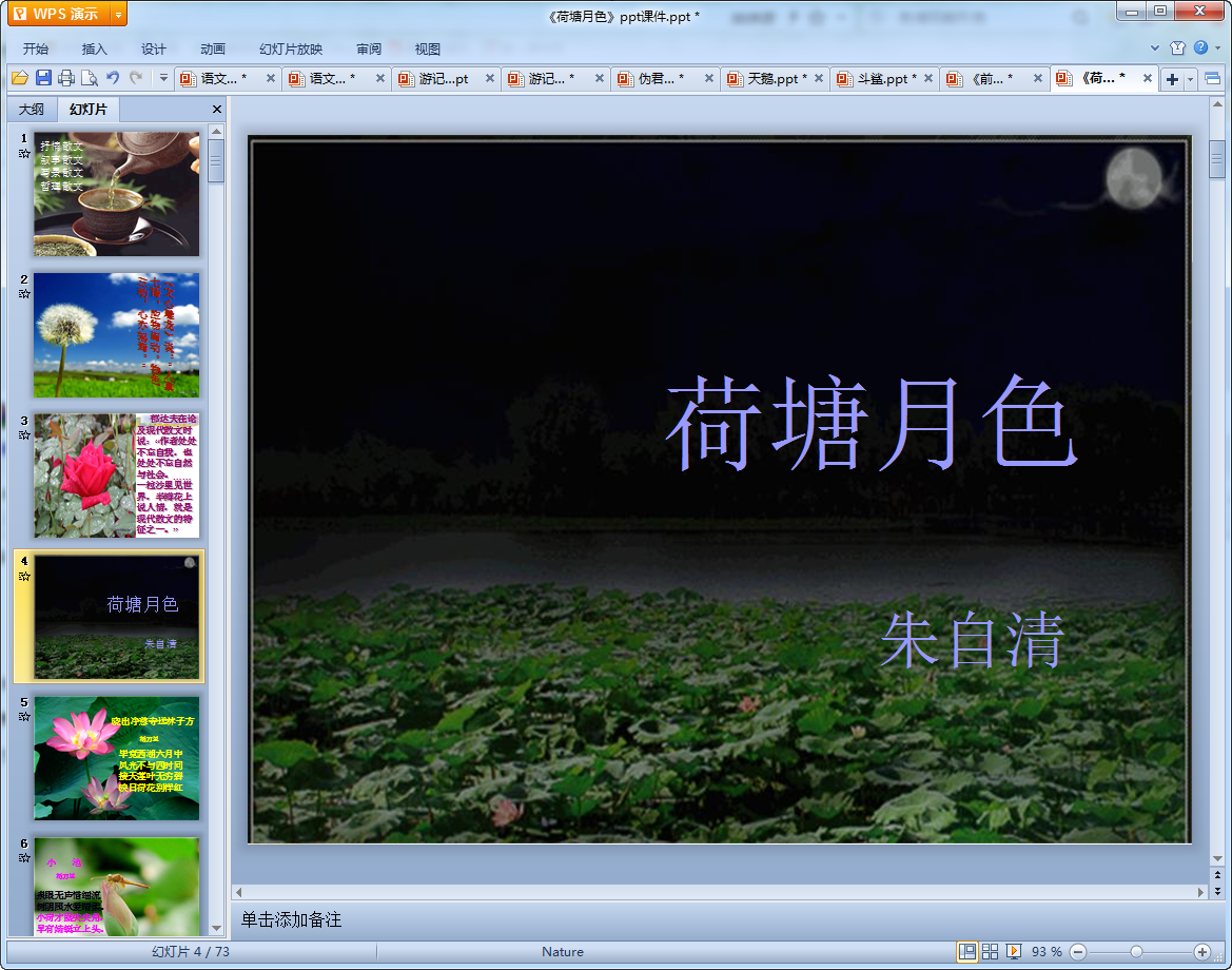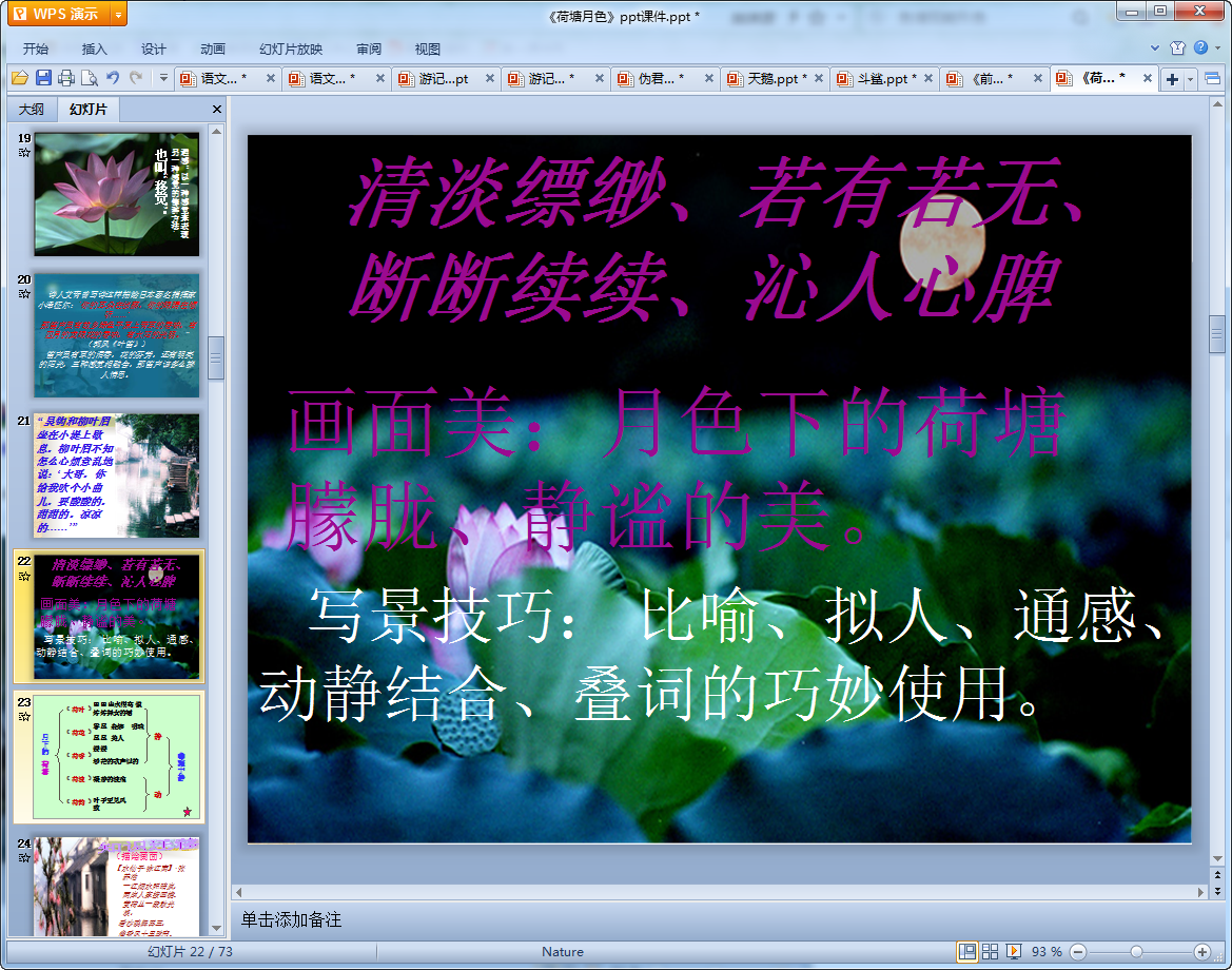 这是由东坡下载编辑整理的荷塘月色ppt课件,该课件共有73页内容非常丰富,对文章解析非常详细,非常不错的一篇教学课件,有兴趣的老师们可以来看看,我们为大家提供免费的下载!