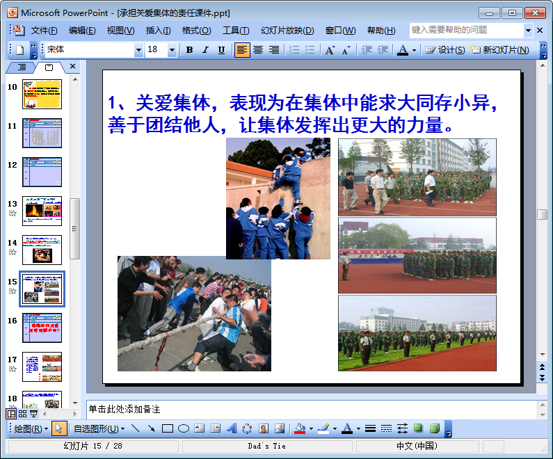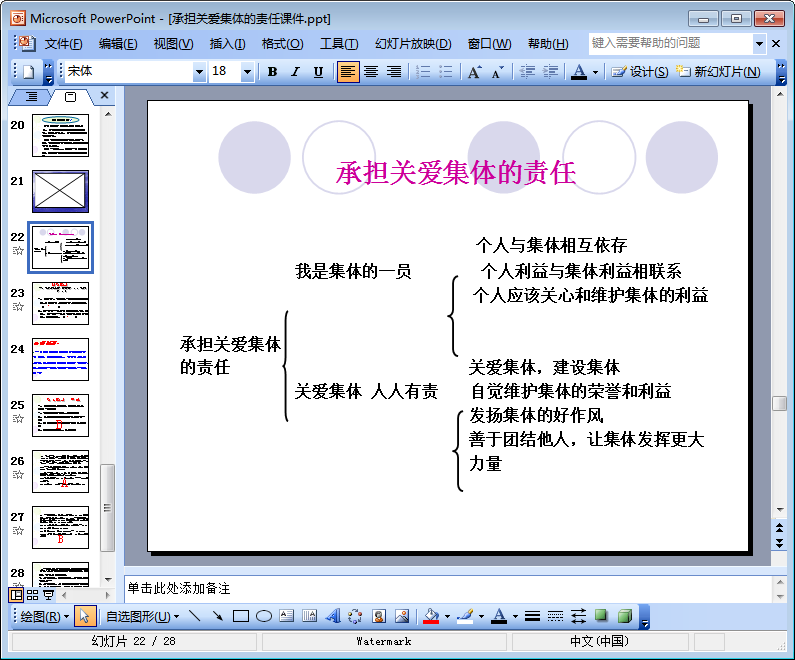 作为集体的一份子,每个人都应该有一种关爱集体的责任感。那么“一份子”应该如何来承担关爱集体的责任呢?本节内容东坡小编为大家整理带来的是一份承担关爱集体的责任课件ppt,不妨借助这份ppt的相关内容一起来探讨一下吧!该ppt共28页,为2015最新免费版,欢迎有需要的朋友们前来东坡下载!