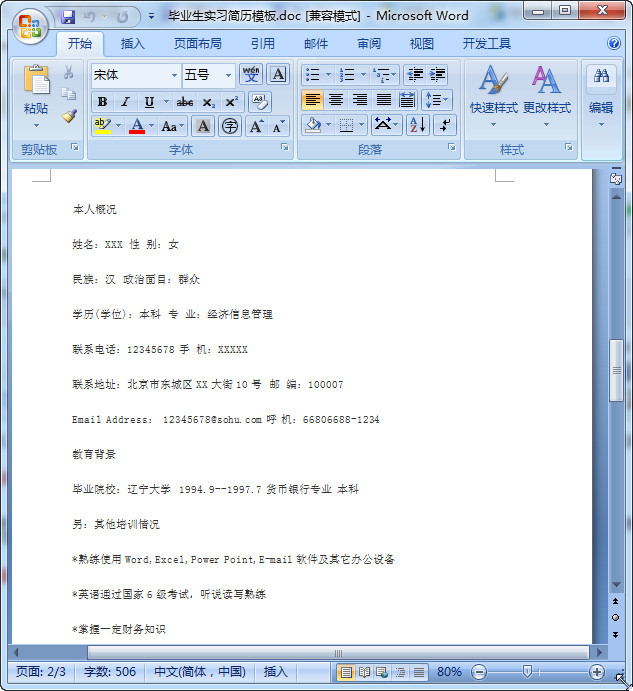 这是一份专业的、标准的应届毕业生实习简历,非常的实用。对于毕业实习找工作的朋友们来说,值得一看。欢迎前来东坡下载使用!