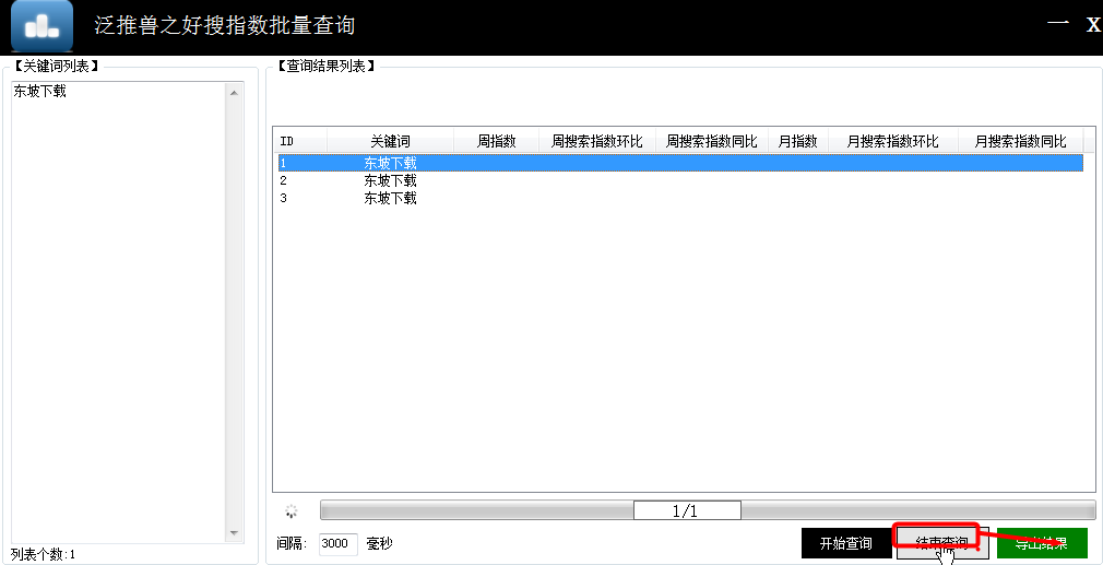 3、觉得满意了,就可以点击【结束查询】,还能够导出结果
