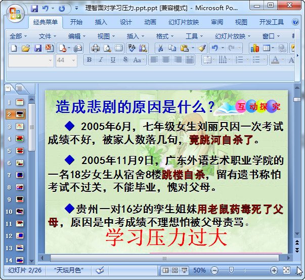 班会主题ppt理智面对学习压力课件目的