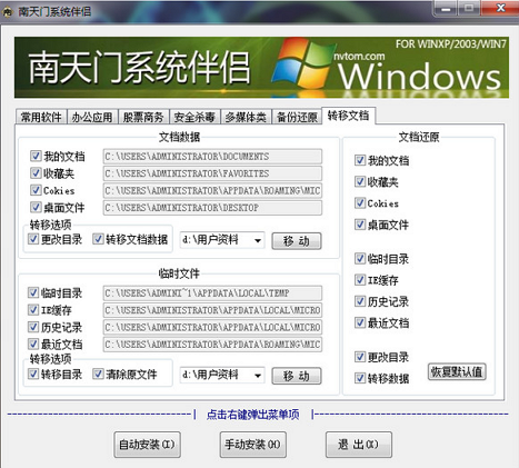 南天门系统伴侣,Windows系统个人用户数据一键转移,用户自选软件整理一键安装管理编辑工具(可自选软件,不含软件包),有需要的赶紧来下载使用吧。