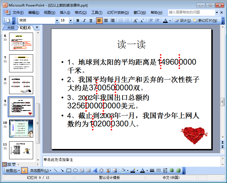 该小学数学课件之亿以上数的读法课件ppt共由12页组成,课件旨在教会学生们认识并会读亿以上的数,下文是该ppt的内容摘选及预览图,如果你觉得这份ppt正是你所需要的话,只需轻轻点击本文相应的下载地址进行下载即可!