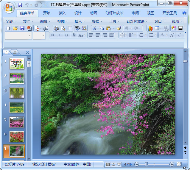 触摸春天ppt课件是一份完美的新课标人教版四年级语文下册的ppt课件。十分的精美,总共有89页,开篇就写了描写春天的词句。后面又有非常多美丽的春天图片,引入主题,让孩子们在春天里学习更多的知识,更加有兴趣。欢迎前来东坡下载使用!