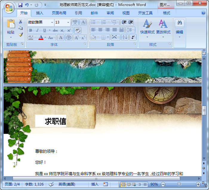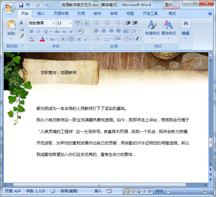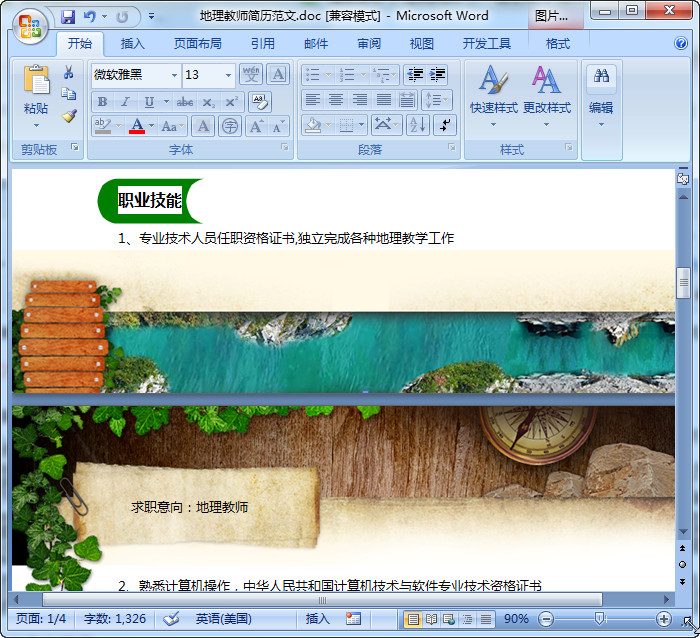 地理教师简历范文预览