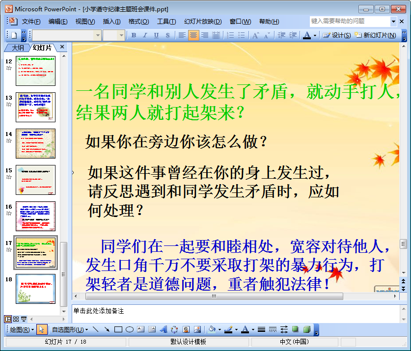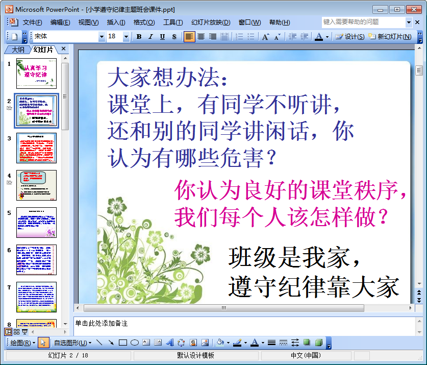 认真学习,遵守纪律——这是一份适合作为小学班会课件的ppt,ppt共15页,内容包含有伟人守纪的故事、与纪律相关的问题探讨等,是一份非常具有教育意义的课件ppt,下文是该ppt的内容摘选及预览图,需要查阅该ppt全部内容的朋友们只需轻轻点击本文相应的下载地址进行下载即可!