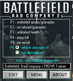 战地:叛逆连队2修改器六项795745是dRolle基于游戏795745版本制作,使用后可获得无需装弹、无限生命、容易击杀等六项功能,让你轻松玩转游戏。
