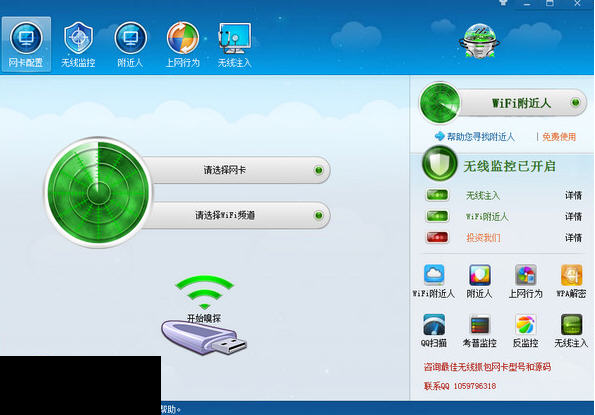Wifi嗅探器软件可以从附近截获无线wifi信号,搜索附近人qq、朋友网、人人、微信等账号考普WiFi附近人。
