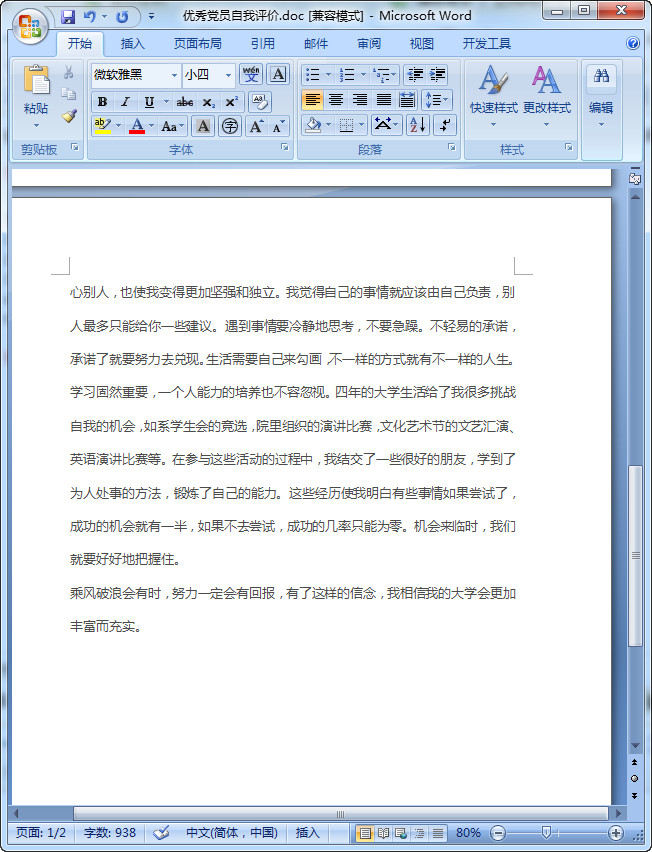 优秀党员自我评价范文预览