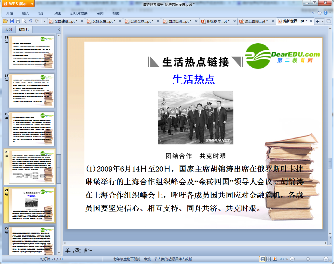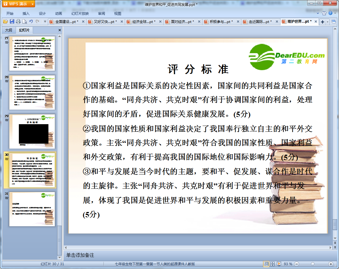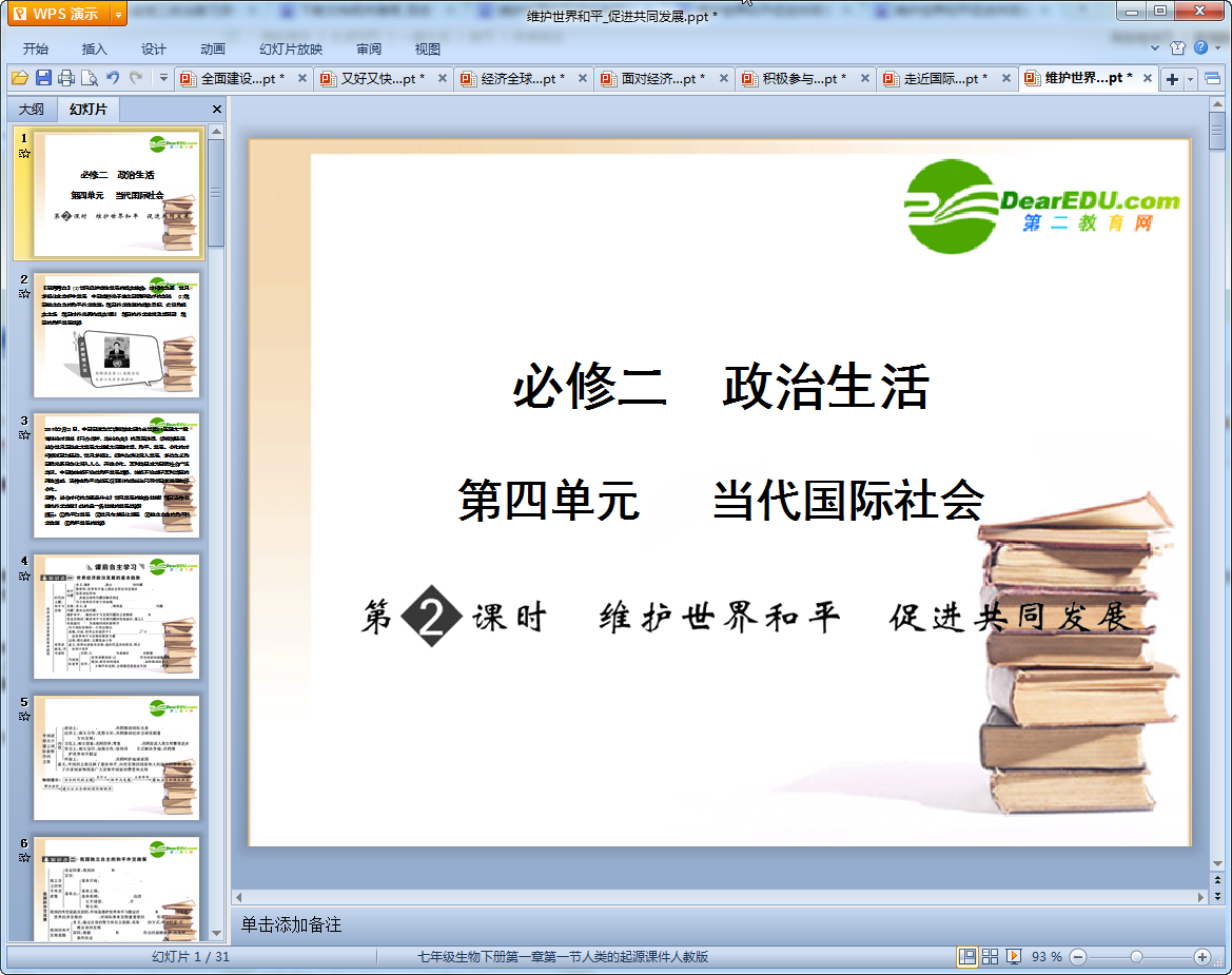 这是一篇高中政治必修二复习课件维护世界和平促进共同发展ppt,该课件共有31页制作比较精细对课本中出现的高考重点都有做出解析,再配上相应的习题让同学们更快的理解知识,有需要的老师们可以来下载使用!
