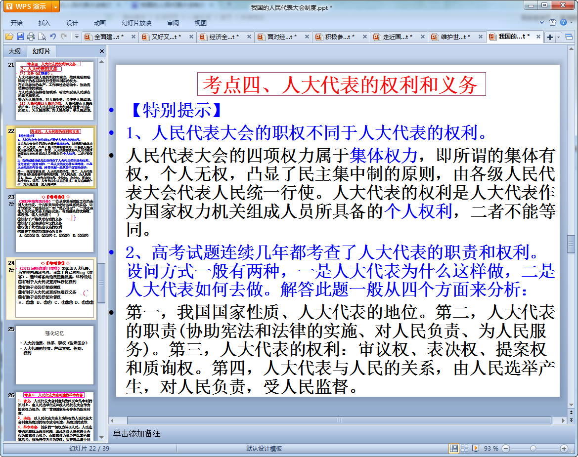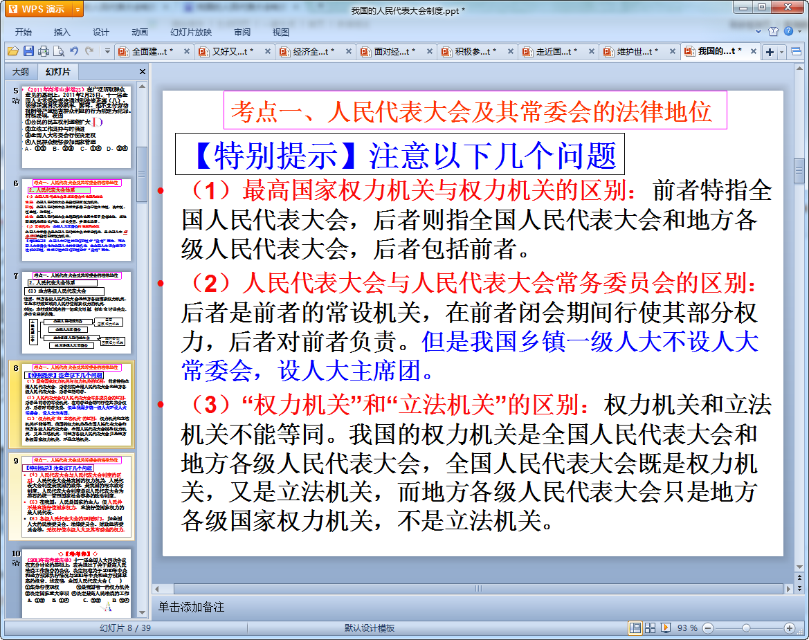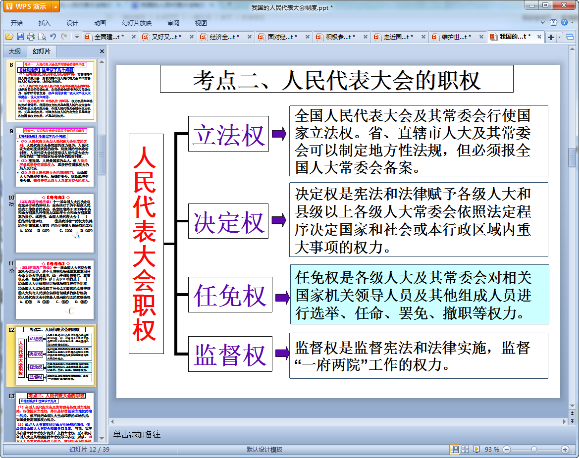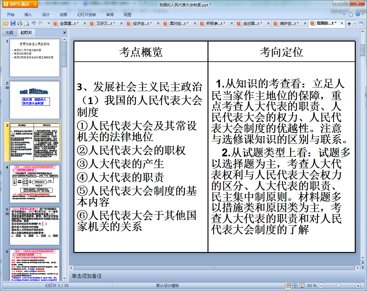 这是一篇高中政治必修二我国的人民代表大会制度复习课件,该课件共有39页制作精细内容丰富,对课本上的高考重点都做出了分析配搭上相应的复习题,可以说是非常不错的复习课件,有需要的老师们可以来下载使用!