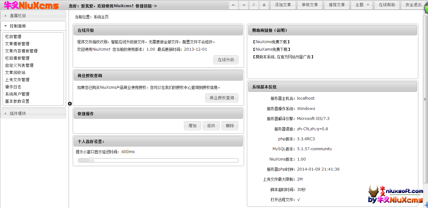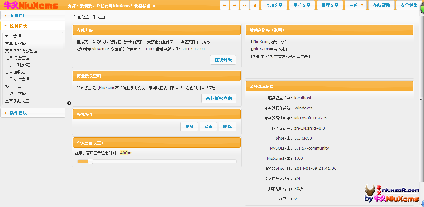 2013年底-2014年初,牛叉内容管理系统(NiuXcms) 1.00 正式发布!官网首页免费下载!