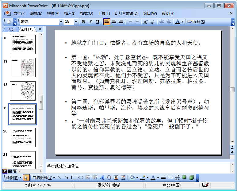 你知道但丁其人及《神曲》的创作经过吗?你知道《神曲》作品形式及艺术特色及其内涵吗?你知道《神曲》的故事结尾吗?如果你和小编一样对这些问题都不清楚的话,那么不妨就来看看这份由34页组成的详细介绍但丁以及但丁神曲的ppt吧!相信看完之后你也会和小编一样茅塞顿开的哦!该但丁神曲介绍ppt完全免费,有需要的朋友可以放心下载!