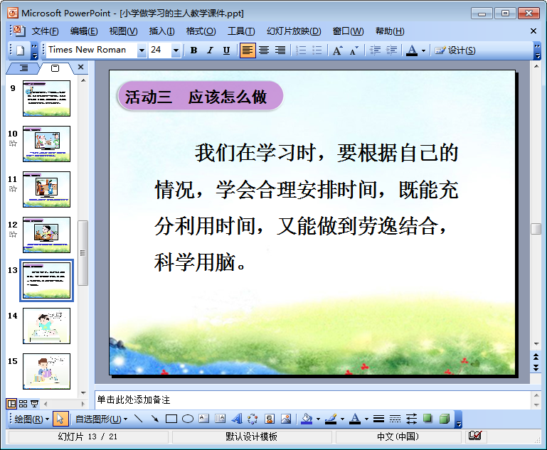 我们在学习时,要根据自己的情况,学会合理安排时间,既能充分利用时间,又能做到劳逸结合,科学用脑。