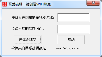吾爱一键创建Wifi热点工具是一款非常强大的创建wifi热点软件。让你随时都有wifi使用。有需要的可以来东坡下载使用!