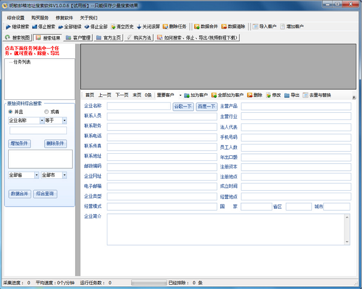 明敏邮箱地址搜索软件一款可以帮助用户从搜索引擎中采集邮箱的免费邮箱搜索器,该搜索器可按关键词从搜索引擎中提取邮箱地址,可以单独提取指定的网址,支持搜索所有类型的邮箱!