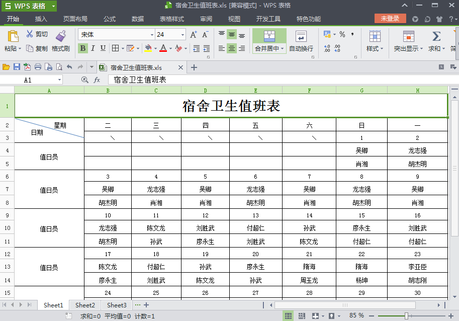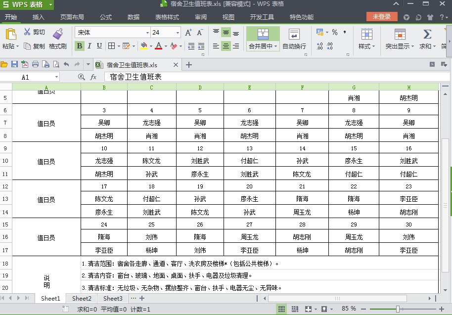 宿舍卫生值班表预览