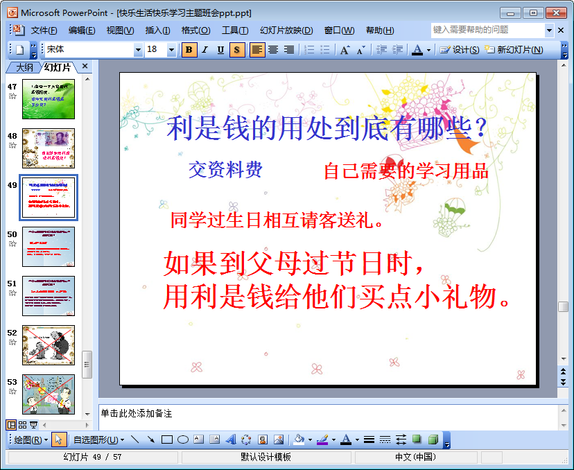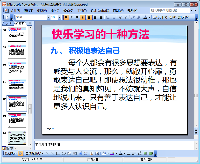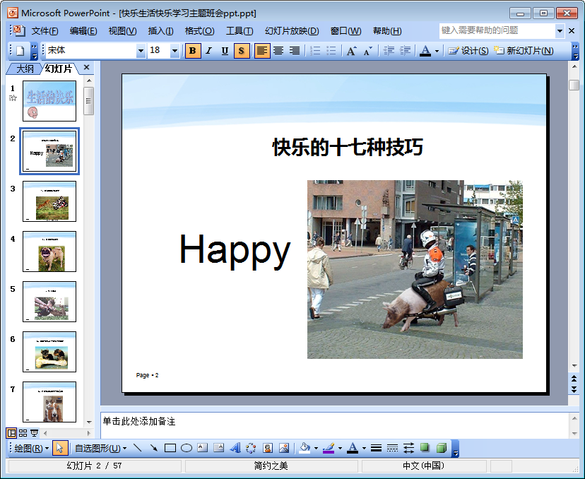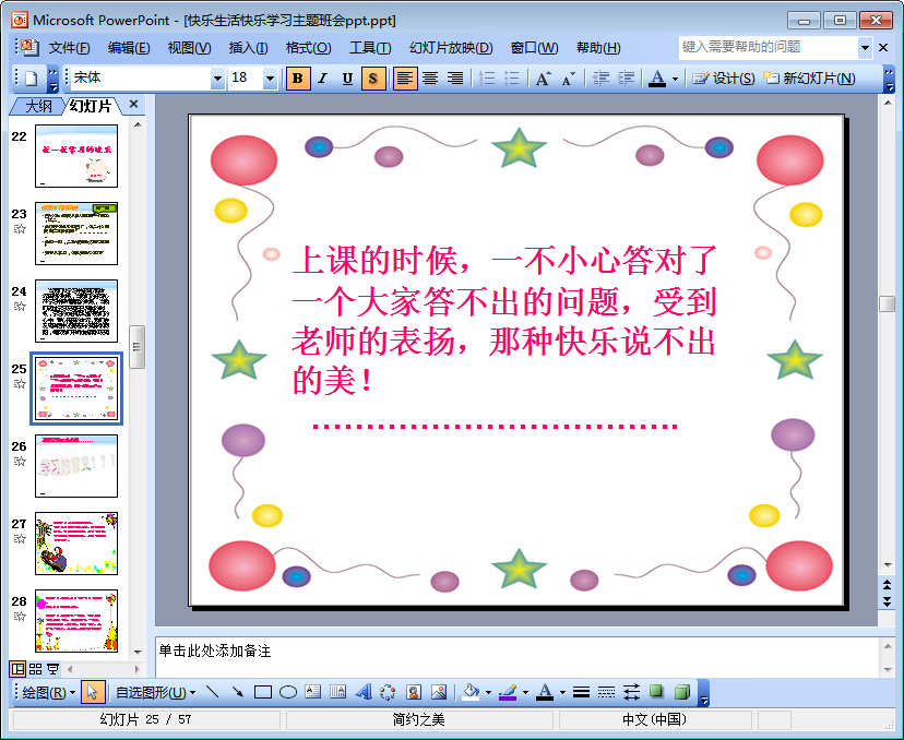 你知道生活的快乐是什么吗?你知道获得快乐的技巧是什么吗?如果你对这些问题充满好奇的话,那么不妨让我们一起通过这份由15页组成的快乐生活快乐学习主题班会ppt一起来探讨一下吧!该ppt内容积极向上,充满正能量,如果你需要一份快乐主题班会ppt,那么它将是你不二的选择哦!有需要的朋友们快来下载吧!